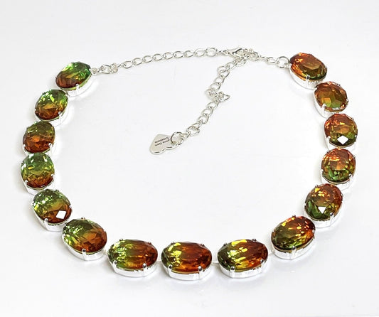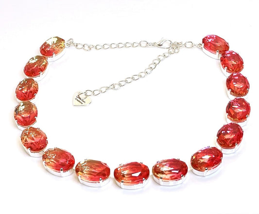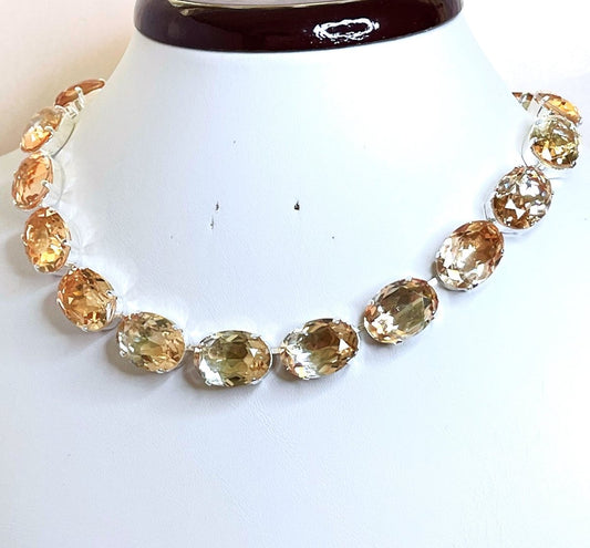 Rose Peach Crystal Necklace | Anna Wintour Style | Clear Georgian Collet | Statement Riviere Choker -