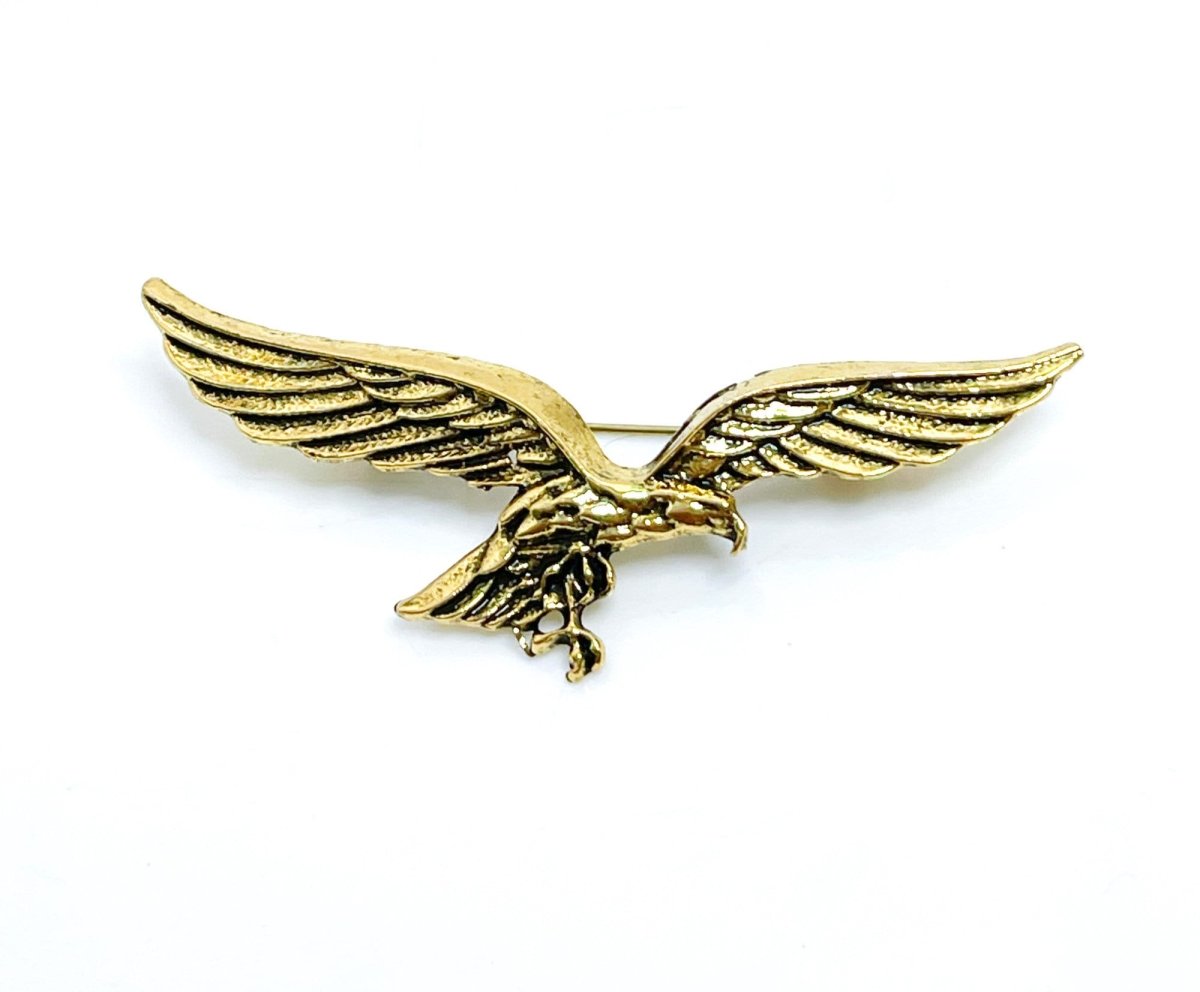 Antique Gold Eagle Brooch | Unisex Jewellery | Vintage Style Bikers Pin