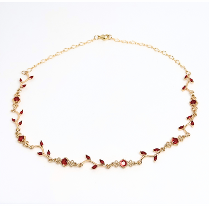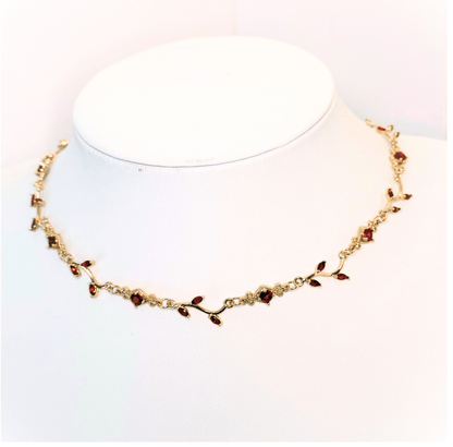 Channel timeless elegance with our Regency Gold Vine Red Crystal Necklace, Bracelet and Earrings, a delicate piece inspired by the opulence of the past and the enchantment of the fairycore world.