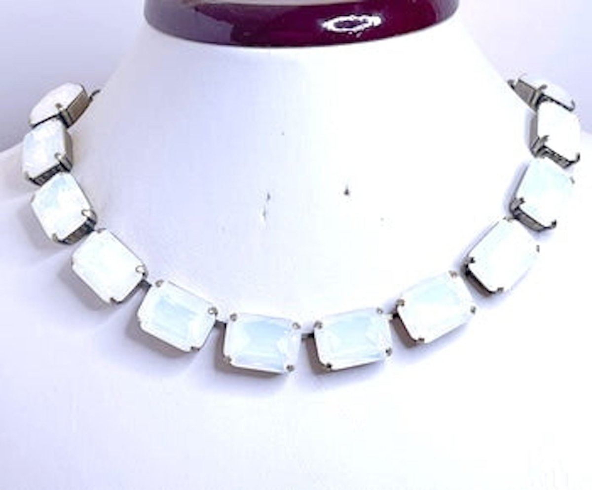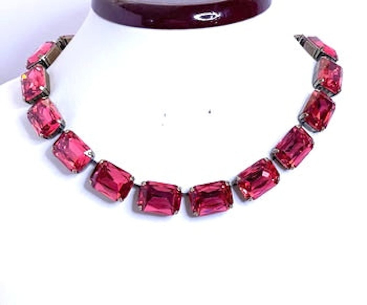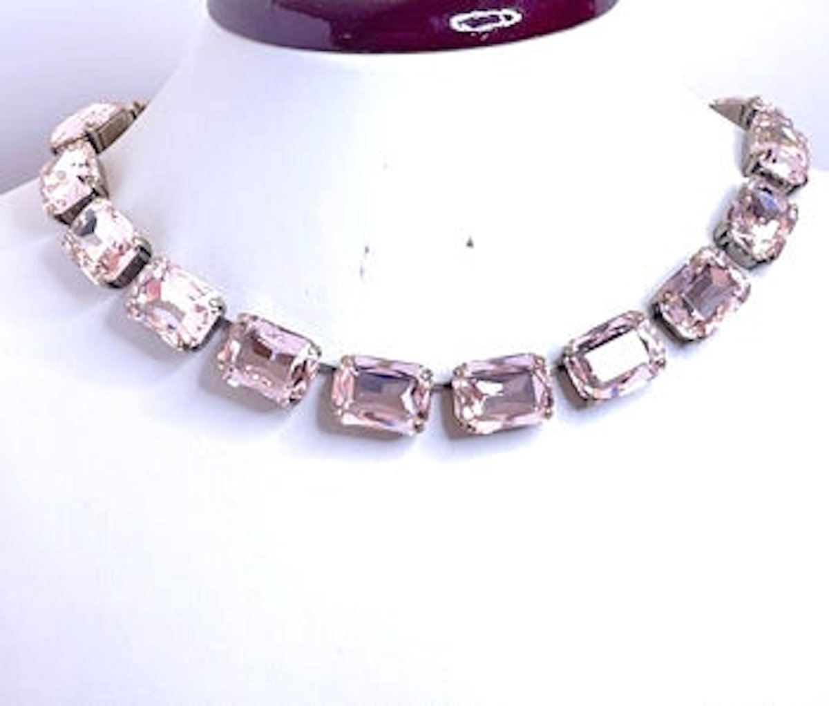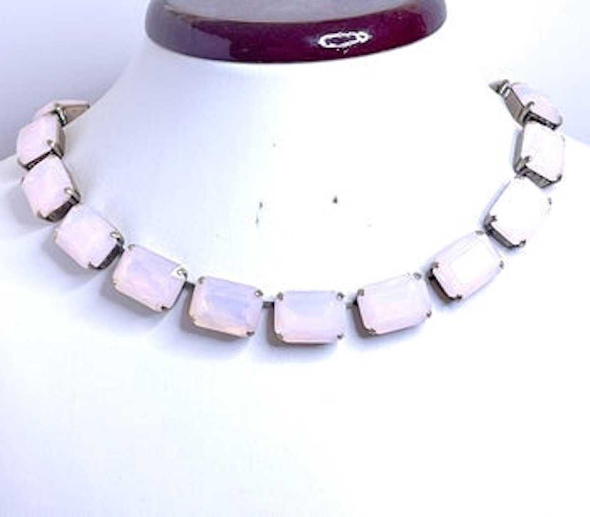 Pink White Opal Rose Georgian Collet Necklaces | Pink Crystal Chokers | Anna Wintour Style